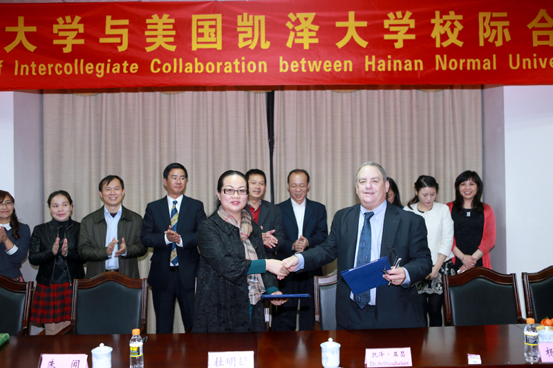签约仪式上,杜明娥副校长代表学校与美国凯泽大学的凯泽· 亚瑟校长签署了“ 海南师范大学与美国凯泽大学开展校际交流合作的备忘录” 。