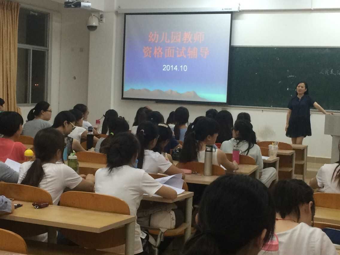 全国教师资格考试面试于2015年5月16日— 17日进行。为帮助大家掌握基本的面试技巧,顺利通过面试考试,教务处特组织校内外具有丰富经验的面试考官担任主讲教师进行面试培训,5月5日至5月13日期间共安排各学科面试培训20场。
