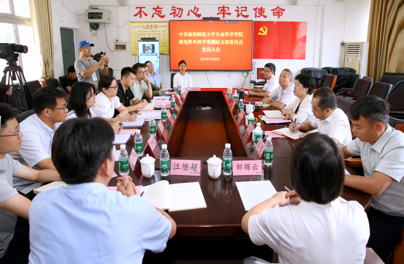 9月28日上午,海南师范大学生命科学学院海龟野外科学观测站党支部第一次党员大会在龙昆南校区生科楼举行,标志着该野外科学观测站党支部正式成立。校党委书记许玫、党委副书记符刘才出席,生命科学学院领导班子成员、三沙市海洋保护区管理局代表及观测站师生代表列席会议。