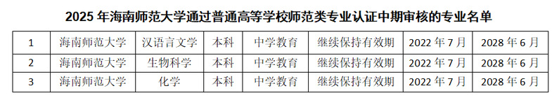 近日,教育部办公厅发布《关于公布2025年通过普通高等学校师范类专业认证专业名单及中期审核专业名单的通知》(教师厅函〔2025〕18号)。我校汉语言文学、生物科学、化学3个专业顺利通过师范类专业认证中期审核,审核结论为继续保持原认证有效期。
