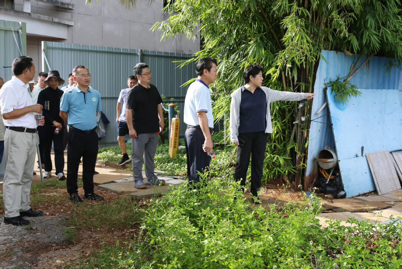 我校党委书记许玫、党委副书记符刘才一行深入桂林洋校区基建工地、教学楼、综合楼、学生宿舍、食堂等重点区域,实地检查防风防汛措施落实情况。