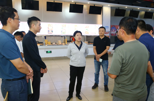 许玫在食堂了解餐饮供应、食材储备与食品安全情况