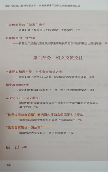 我校妇联报送的工作案例《我在自贸港讲中国故事——海南师范大学女留学生文化交流案例》入选全国妇联编写的《新时代妇女儿童和妇联工作、家庭家教家风建设实践典型案例汇编》,并由中国妇女出版社公开出版发行。全国妇联面向31个省(自治区、直辖市)和新疆生产建设兵团精选65个案例,其中海南省有2个案例入选,1个来自海南省妇联,1个来自海南师范大学妇联,这是我校深入贯彻落实习近平总书记关于妇女儿童工作重要论述的生动体现和重要成果,也充分体现全国妇联对我校工作的认可。