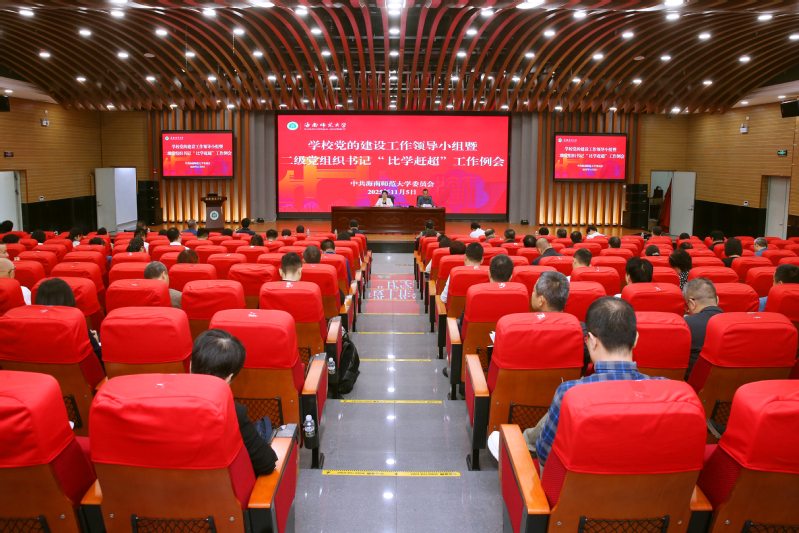 11月5日上午,我校在桂林洋校区图书馆一楼报告厅召开党的建设工作领导小组暨二级党组织书记“比学赶超”工作例会,以“标杆引领强基础,问题导向提质效”为主题,总结党建经验,表彰先进典型,剖析存在问题并明确下一阶段发展方向。校党委书记许玫出席,党委副书记符刘才主持会议。