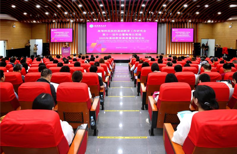 11月8日上午,在海南师范大学建校76周年之际,学校在桂林洋校区图书馆一楼报告厅举办高等师范院校基础教育工作研究会第十一届年会暨海南自贸港2025年基础教育高质量发展论坛。来自省内外知名专家学者、基础教育相关学科专业师生代表齐聚一堂,在思想碰撞与智慧交融中,共绘海南基础教育高质量发展新蓝图。