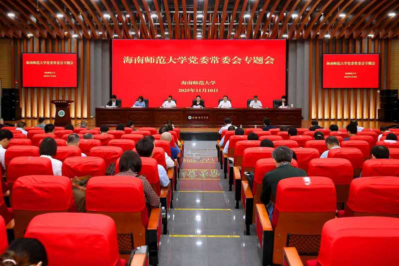 会议强调,全校党员干部师生要提高政治站位,把学习宣传贯彻习近平总书记重要讲话精神与党的二十届四中全会精神作为当前和今后一个时期的重大政治任务,要通过党委理论学习中心组、党委会“第一议题”、党支部“三会一课”、宣传氛围营造等方式学习习近平总书记重要讲话精神;要发挥学科人才优势,紧扣关键领域深入开展研究阐释,确保习近平总书记重要讲话精神入脑入心、落地生根;要将贯彻落实习近平总书记重要讲话精神、党的二十届四中全会精神与教育强国建设战略部署、省委省政府支持我校建设一流师范大学的部署结合起来,紧扣自贸港建设需求,以高度的责任感和使命感编制学校“十五五”规划;要在提升人才培养质量、加快科研创新转化、深化国际合作交流、服务现代化产业体系、新质生产力发展等领域展现新作为,确保学校发展与国家战略同频共振;要坚持底线思维,筑牢政治安全和意识形态防线,织密全域安全防护网;要以永远在路上的清醒和坚定推进全面从严治党,坚持把干部作风建设与巩固深入贯彻中央八项规定精神学习教育成果一体谋划、一体部署、一体推进,完善一体推进不敢腐、不能腐、不想腐工作机制,努力营造风清气正的政治生态,建设清廉校园。