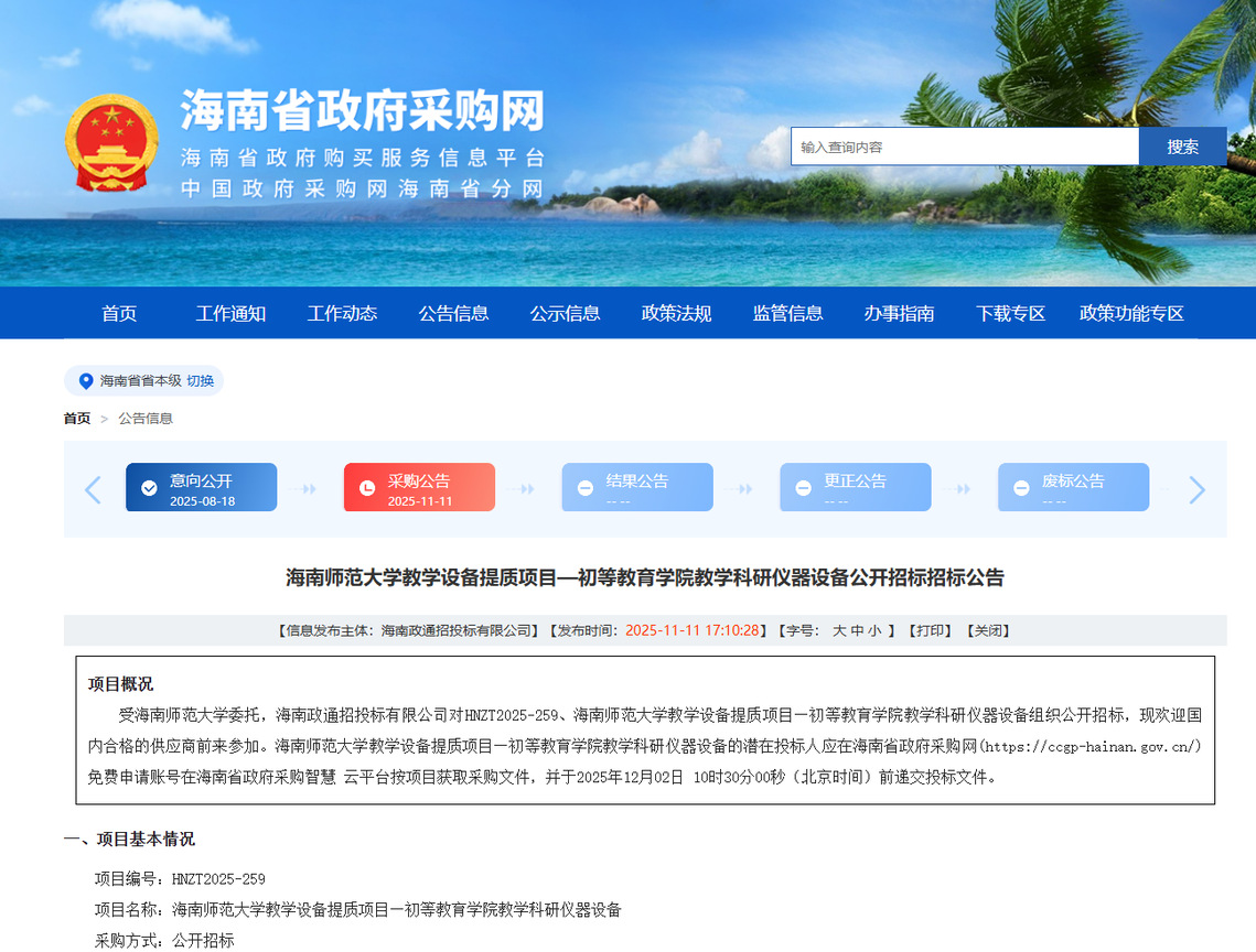公告链接:https://ccgp-hainan.gov.cn/maincms-web/articleHn?type=notice&id=c2d6b473-7807-4b59-b72f-6e144c355d32&planId=8a1d13439a01264e019a14b3afc12711&channel=c5bff13f-21ca-4dac-b158-cb40accd3035