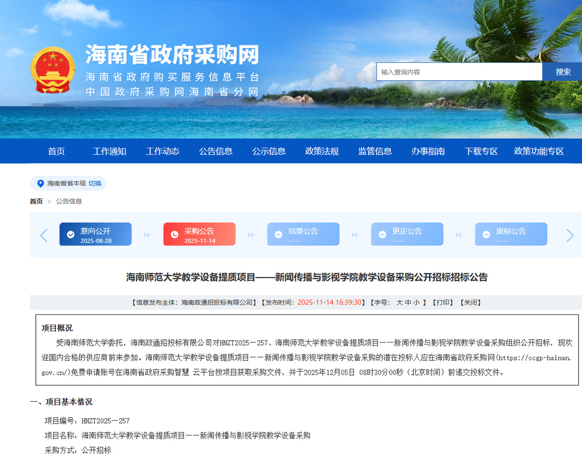 公告链接:https://ccgp-hainan.gov.cn/maincms-web/articleHn?type=notice&id=b825437c-a4be-4ddf-b432-e5ed6e96ba84&planId=8a1d1a2b9a3a2355019a6cf4e5d62bc2&channel=c5bff13f-21ca-4dac-b158-cb40accd3035