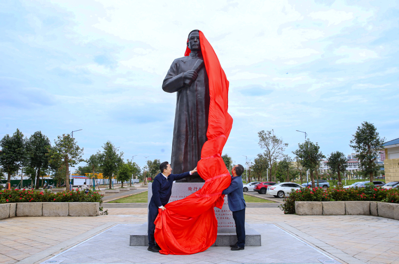 聂清斌和符刘才共同为陶行知塑像揭幕
