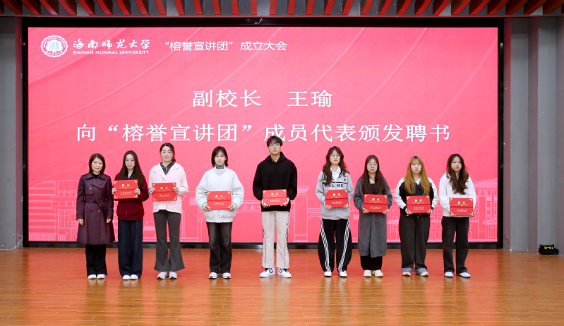 会上,国内合作与发展处负责人宣读了《关于授予2024-2025学年“非彤小可助学金”的决定》。学生工作处负责人宣读了《关于成立海南师范大学“榕誉宣讲团”的决定》。