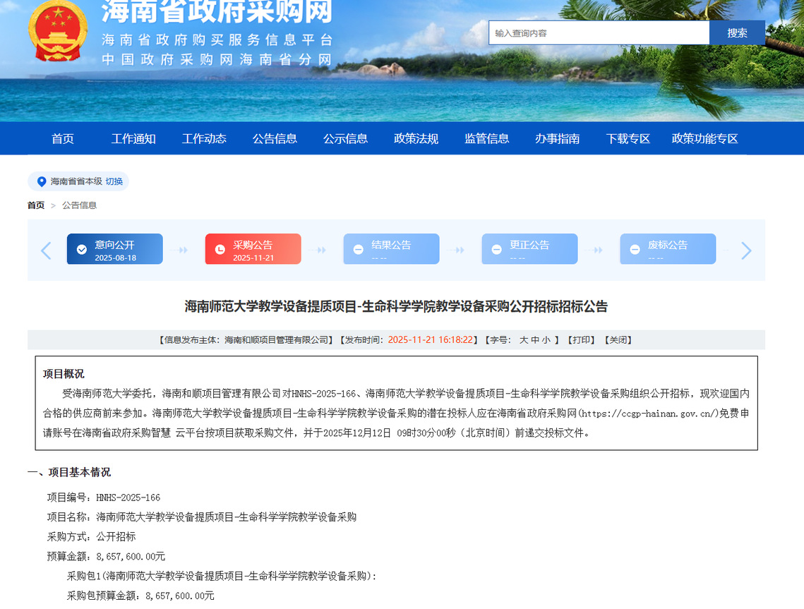 公告链接:https://ccgp-hainan.gov.cn/maincms-web/articleHn?type=notice&id=fe30698e-2675-4d8e-90a2-d782e2816639&planId=8a1d13439a01264e019a29db1e4e61a2&channel=c5bff13f-21ca-4dac-b158-cb40accd3035