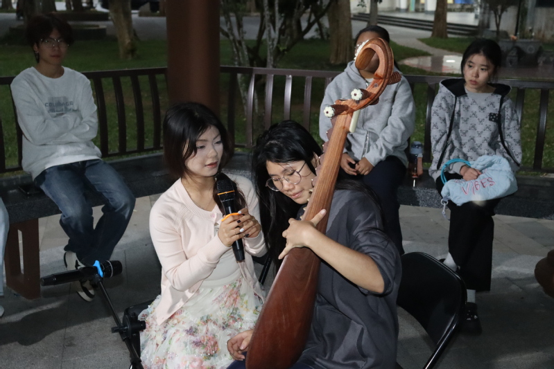 活动现场内容丰富多元、亮点纷呈,涵盖魔术魔方教学、海龟保护科普、琵琶演奏教学及礼仪规范训练四大板块,满足了学生多样化的兴趣需求。在魔术协会开设的魔术魔方体验区,同学们围坐一堂,在志愿者的指导下动手拆解、反复尝试,在指尖灵动中锻炼逻辑思维与空间想象力,不时发出阵阵惊叹。海龟保护协会开设的科普专区前人头攒动,志愿者通过图文展示、趣味问答、实物模型讲解等形式,向同学们普及海洋生态保护知识,解读海龟生存现状与保护意义,唤醒大家的生态环保意识,传递“守护海洋家园”的责任担当。月半亭下,灼华汉章汉服社开设的演奏教学区则洋溢着古典韵味,专业演奏者指尖轻拨琴弦,《弱水三千》等经典曲目婉转悠扬,吸引众多同学驻足聆听、踊跃尝试,在一对一的教学指导中感受传统乐器的独特魅力,传承中华优秀传统文化。在大学生活动中心,大学生艺术团礼仪队带来的规范训练环节同样备受关注,队员们以标准的站姿、坐姿、走姿示范,细致讲解日常交往、公共场合中的礼仪规范,帮助同学们塑造良好仪态,提升综合素质。