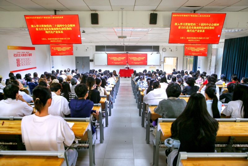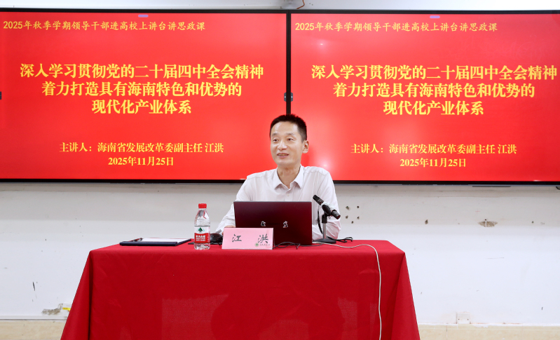 11月25日上午,海南省发展改革委副主任江洪来到我校龙昆南校区,以《深入学习贯彻党的二十届四中全会精神着力打造具有海南特色和优势的现代化产业体系》为题为师生讲授思政课。我校党委常委、副校长张引出席并主持,思政课教师、学生代表160余人参加思政课。