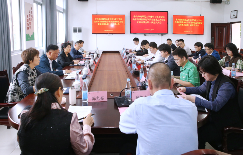 12月2日下午,中共海南师范大学化学与化工学院热带药用资源化学教育部重点实验室支部委员会第一次党员大会在桂林洋校区化工楼二楼会议室召开。校党委书记许玫、党委副书记符刘才出席会议。