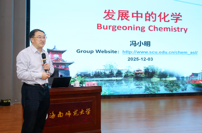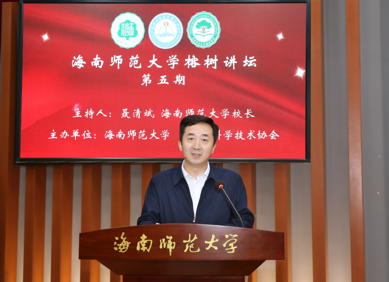 12月3日,海南师范大学第五期“榕树讲坛”在桂林洋校区图书馆一楼报告厅举办。本次讲坛特别邀请中国科学院院士、中国化学会副理事长、四川大学冯小明教授作题为《发展中的化学》专题报告。海南省科学技术协会党组成员、副主席徐伟,我校校长聂清斌,纪委书记、监察专员刘汝兵出席活动。活动由聂清斌主持。