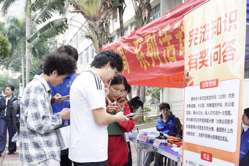 为深入学习贯彻习近平法治思想和党的二十届四中全会精神,进一步增强全校师生的宪法意识和法治观念,学校于2025年12月3日至4日,分别在桂林洋校区和龙昆南校区组织开展了“宪法宣传周”系列宣传教育活动,活动吸引了近千名师生参与。