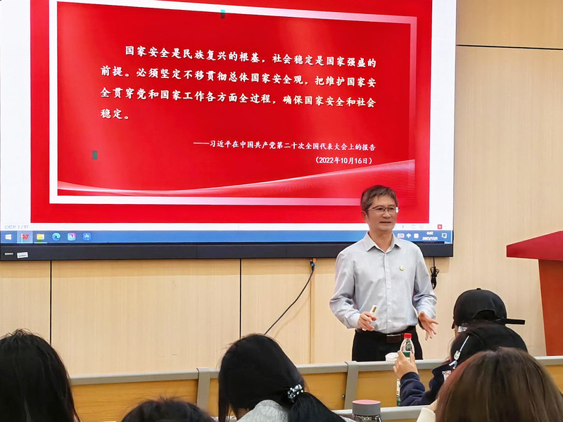 许玫以“维护和塑造国家安全”为题,深入阐释了为什么要维护和塑造国家安全,新时代国家安全工作的基本遵循和总体国家安全观的创新性贡献。她指出,国家安全是民族复兴的根基,社会稳定是国家安全的前提。构建各领域新安全格局,要统筹发展和安全,在发展中更多考虑安全因素,以新安全格局保障新发展格局。推进国家安全体系和能力现代化,要注重建立法治保障、科技支撑、全民参与的创新机制。全体同学要以习近平新时代中国特色社会主义思想为指引,认真学习并贯彻总体国家安全观,筑牢责任意识和安全意识,以实际行动守好国家安全底线。