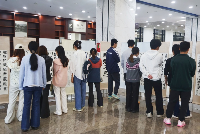 “青春笔迹·家国情怀”纪念一二·九运动90周年主题书法作品展吸引众多师生驻足欣赏