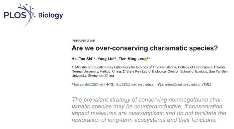 近日,我校生命科学学院史海涛教授与中山大学刘阳教授、李添明教授,在《PLOS Biology》期刊发表题为“Are we over-conserving charismatic species?”的观点文章。该文聚焦当前全球与我国在生态保护实践中普遍存在的“明星物种过度保护和唯数量论”问题,提出应从单一物种数量导向转向生态系统整体功能恢复与长期平衡的新理念,为生物多样性保护的科学决策提供了重要参考。
