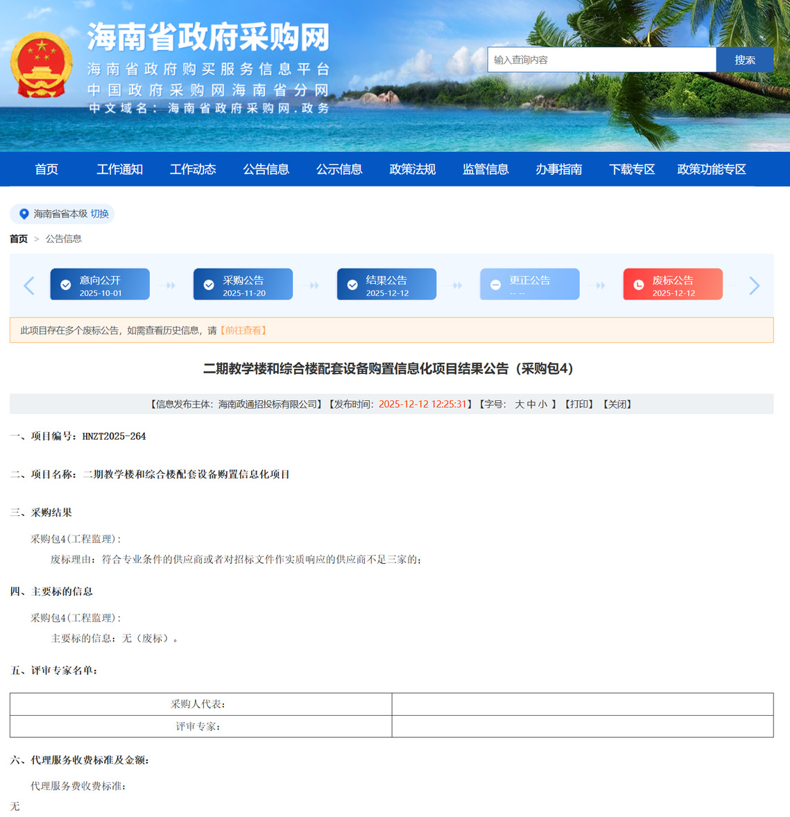 公告链接:https://ccgp-hainan.gov.cn/maincms-web/articleHn?type=notice&id=de4050a8-857c-48d7-854d-12ad1cebad2d&planId=8a1d1e2b99f2a0210199ff93549602a5&channel=c5bff13f-21ca-4dac-b158-cb40accd3035