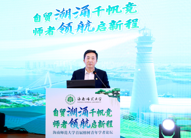 海南师范大学党委书记许玫在致辞中指出,举办首届榕树青年学者论坛,是学校积极响应国家战略、主动融入海南自贸港建设、广纳天下英才、共谋教育发展大计的重要举措。当前,省委省政府高度重视学校发展,专门出台支持学校建设一流师范大学若干措施,给予前所未有的政策支持和资源保障,为学校奋力推进赶超式跨越式发展提供坚实支撑。学校始终秉持“人才强校”战略,致力于打造“有温度、有气度”的人才成长生态,构建最温暖的成长家园和最广阔的发展平台。在海南自贸港建设蓬勃推进、全岛封关运作开启崭新篇章的关键时期,学校热切期盼更多青年才俊选择海南、扎根海师,与时代同频共振,成为海南自贸港建设的亲历者、推动者和贡献者,携手书写无愧于时代、无愧于人民的精彩华章。