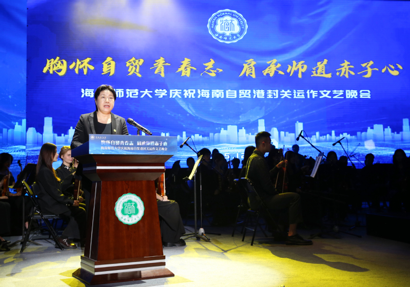 12月18日晚,海南师范大学“胸怀自贸青春志,肩承师道赤子心”庆祝海南自贸港封关运作文艺晚会在桂林洋校区大学生活动中心演艺厅举行。校领导许玫、聂清斌、符刘才、杨兹举出席,相关职能部门负责人、各学院党政领导、师生代表700余人共同观看此次演出。