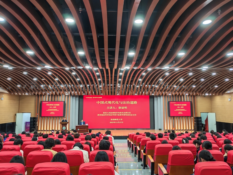12月27日下午,法学院“书香法苑”系列讲坛第8期在桂林洋校区图书馆一楼报告厅举行,特邀最高人民检察院咨询委员会副主任、教育部高等学校法学类专业教学指导委员会主任徐显明教授作题为《中国式现代化与法治道路》的专题报告。校长聂清斌,党委常委、副校长杨兹举出席报告会。会议由杨兹举主持。
