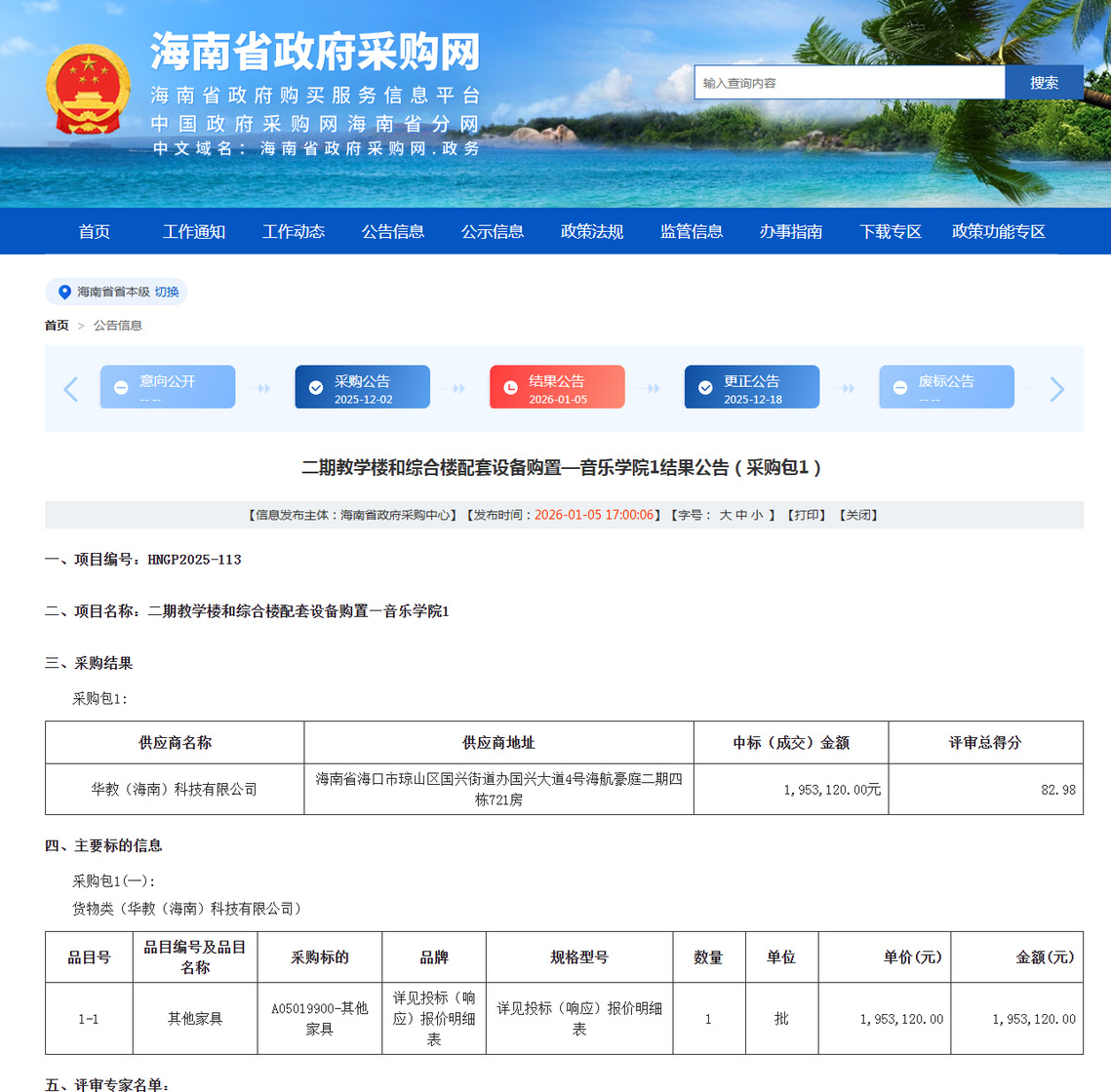 公告链接:https://ccgp-hainan.gov.cn/maincms-web/articleHn?type=notice&id=8661bab0-b493-40ab-b868-5ac722ca337d&planId=8a1d1417996965f30199e17daa925378&channel=c5bff13f-21ca-4dac-b158-cb40accd3035