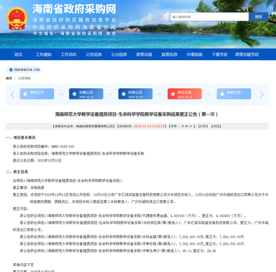 公告链接:https://ccgp-hainan.gov.cn/maincms-web/articleHn?type=notice&id=d02b8969-84e0-42a6-968d-49f30a6f0c27&planId=8a1d13439a01264e019a29db1e4e61a2&channel=c5bff13f-21ca-4dac-b158-cb40accd3035