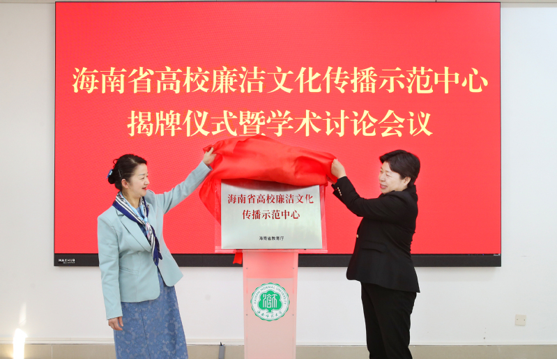 1月16日上午,海南省高校廉洁文化传播示范中心揭牌仪式暨学术讨论会在我校桂林洋校区第一公共楼三楼会议室举行。海南省政府教育总督学李渝凤、我校党委书记许玫出席活动并一同为示范中心揭牌。