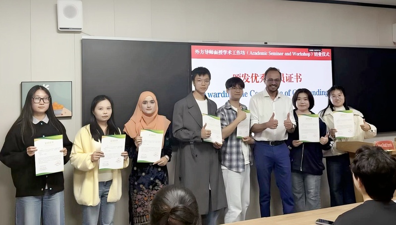 在1月31日结业仪式上,Roberto Rinaldi Sobrinho教授与Ramin Ramezani教授共同为学员颁发结业证书,并向表现突出的学员授予“优秀学员”称号,高度肯定了学员扎实的专业基础与积极的探索精神,并围绕学术研究方法、学科交叉融合等方面,对学员下一步研究提出前瞻性建议。