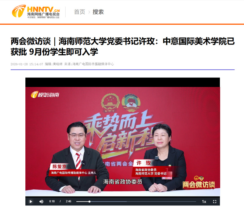 1月28日,海南省政协委员、我校党委书记许玫接受海南广电国际传播融媒体中心两会微访谈节目采访。