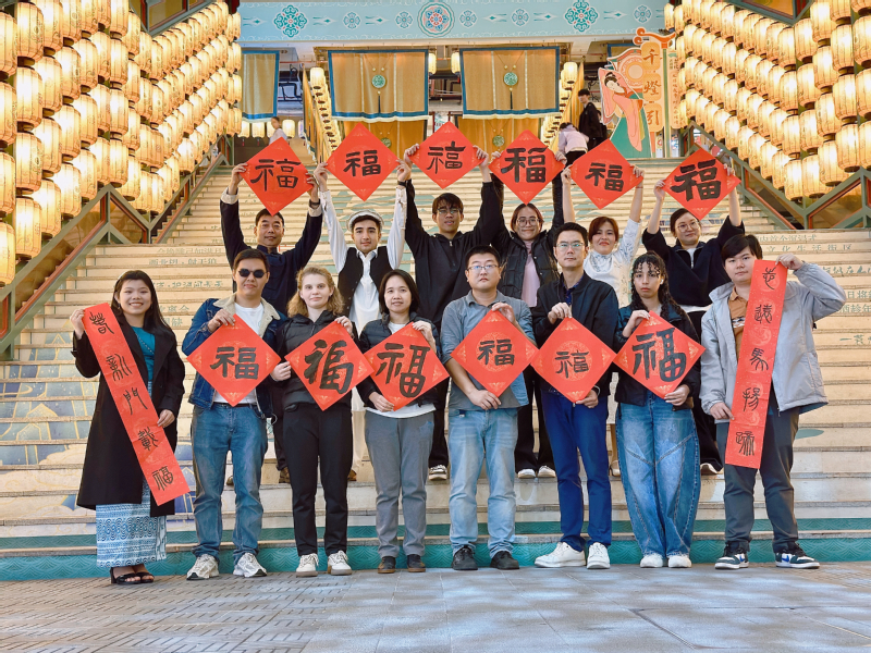 2月1日,我校国际教育学院来自俄罗斯、哈萨克斯坦、摩洛哥、阿富汗、泰国、菲律宾、缅甸等国的10名留学生,前往海口东坡老码头开展笔墨迎春文化实践活动。留学生们铺纸挥毫,为市民游客送上新春祝福,在翰墨清香中体验中国传统文化。