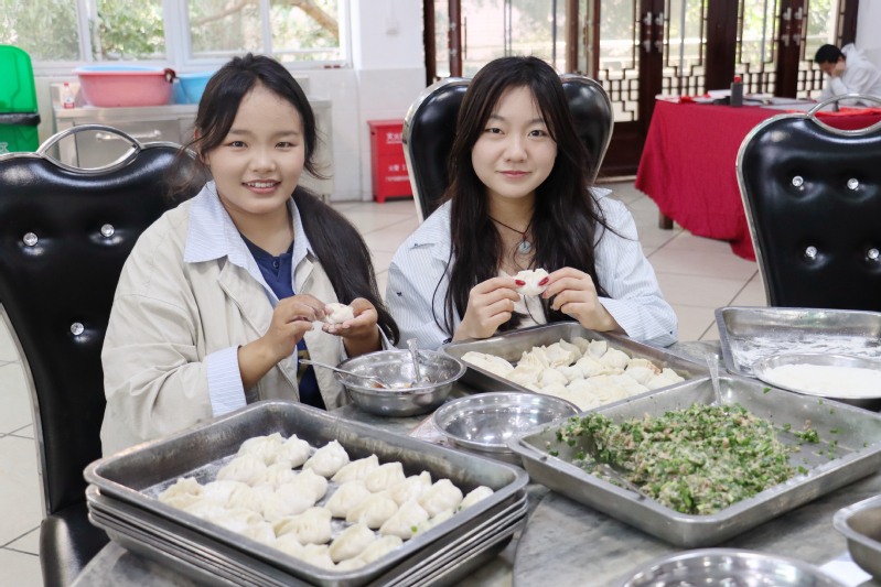 在温馨热烈的氛围中,张引、邓志斌与同学们一道悬挂中国结、张贴福字窗花,研墨展纸、挥毫泼墨,书写下对新岁的美好期盼;分工协作、齐手包制团圆水饺,共同将“家”的味道盛满饺子。
