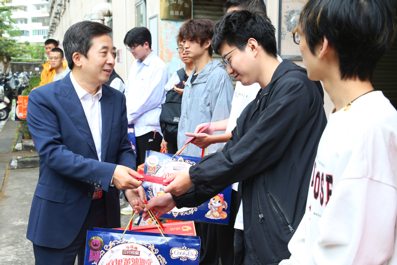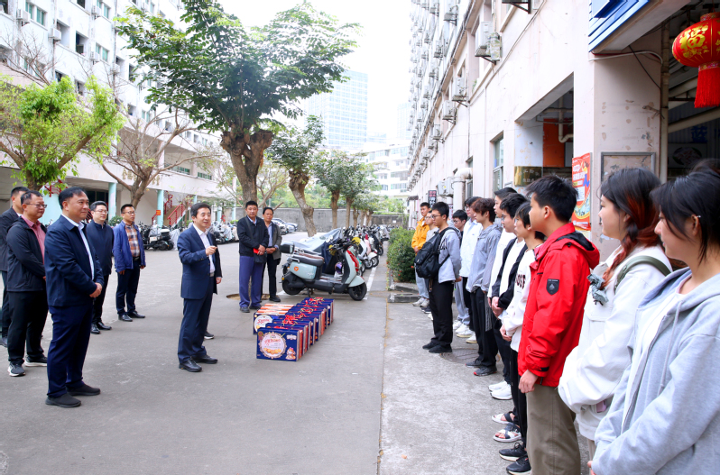 2月19日上午,校长聂清斌,党委常委、统战部部长邓志斌一行先后深入龙昆南、桂林洋校区,看望慰问春节期间的留校学生和在岗员工,向他们致以诚挚的新春问候,并送上新春慰问品,暖心关怀让校园洋溢着浓浓的年味和家一般的温暖。
