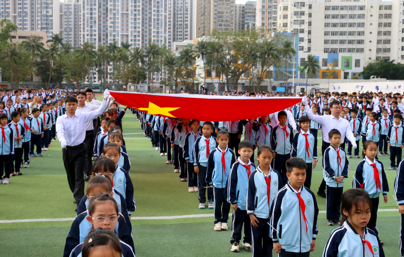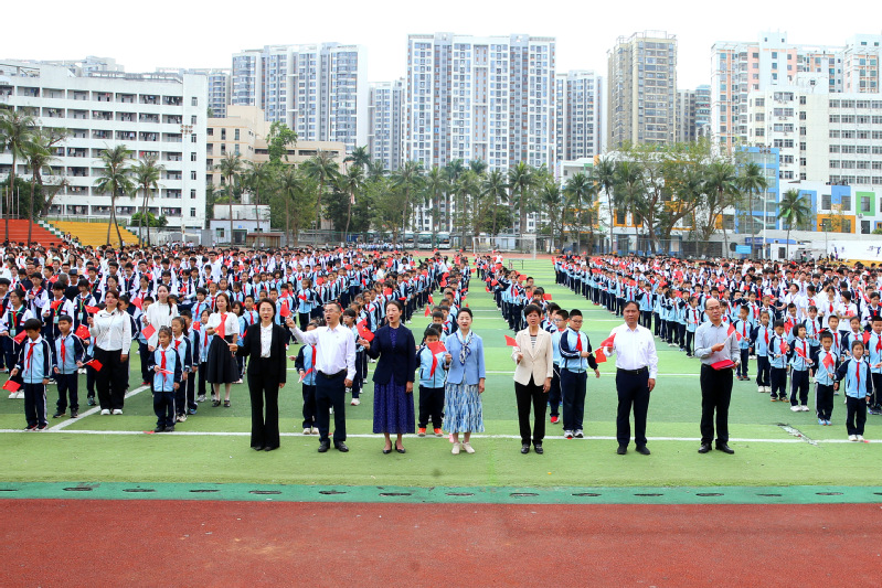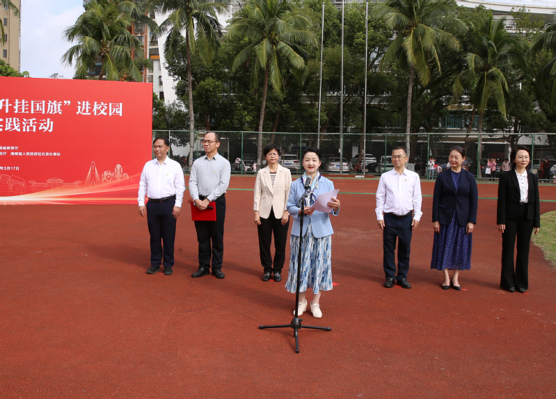 “国旗,是国家的象征和标志,是民族精神与爱国主义精神的集中体现。”海南省人民政府教育总督学李渝凤在致辞中深情寄语师生,要深刻感悟国旗的神圣与厚重,牢记习近平总书记“青春是用来奋斗的”殷切嘱托,在感悟国旗精神中坚定理想信念、厚植家国情怀,积极投身海南自贸港建设的火热实践,努力成长为爱国爱党爱自贸港的坚定信仰者、新时代崇德向善的模范践行者。
