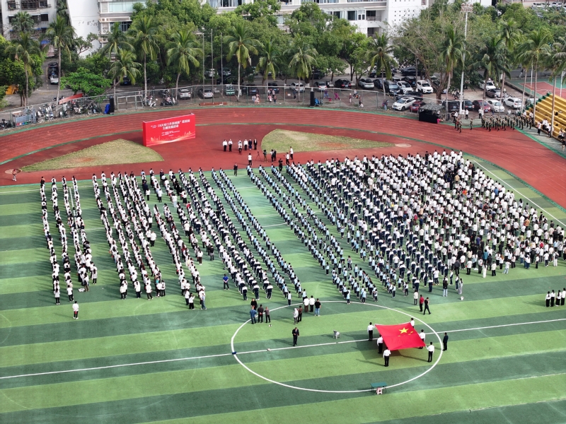 3月17日上午,海南首场“12·18天安门升挂国旗”进校园主题实践活动在我校龙昆南校区田径场举行。我校及附属中学、附属小学1700余名师生代表齐聚一堂,共同迎接一面具有特殊时代意义的五星红旗缓缓入场。这面国旗曾于2025年12月18日海南自贸港启动全岛封关运作当日在北京天安门广场冉冉升起,镌刻着国家战略与海南机遇交汇的历史印记。