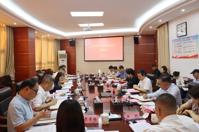 琼山区副区长曾小娟、赵鹏以及相关部门负责人,我校相关部门、学院负责人参加座谈。