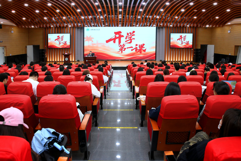 3月26日下午,校党委书记许玫在桂林洋校区图书馆一楼报告厅以《以青春之我,赴时代之约,扣好职业生涯的“第一粒扣子”》为题,为2026届毕业生代表上春季学期开学第一课。